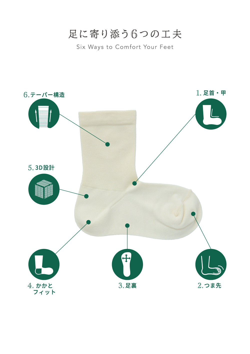 つま先からかかとまで、すべての部分に込められた想いが、あなたの毎日を快適に支えます。