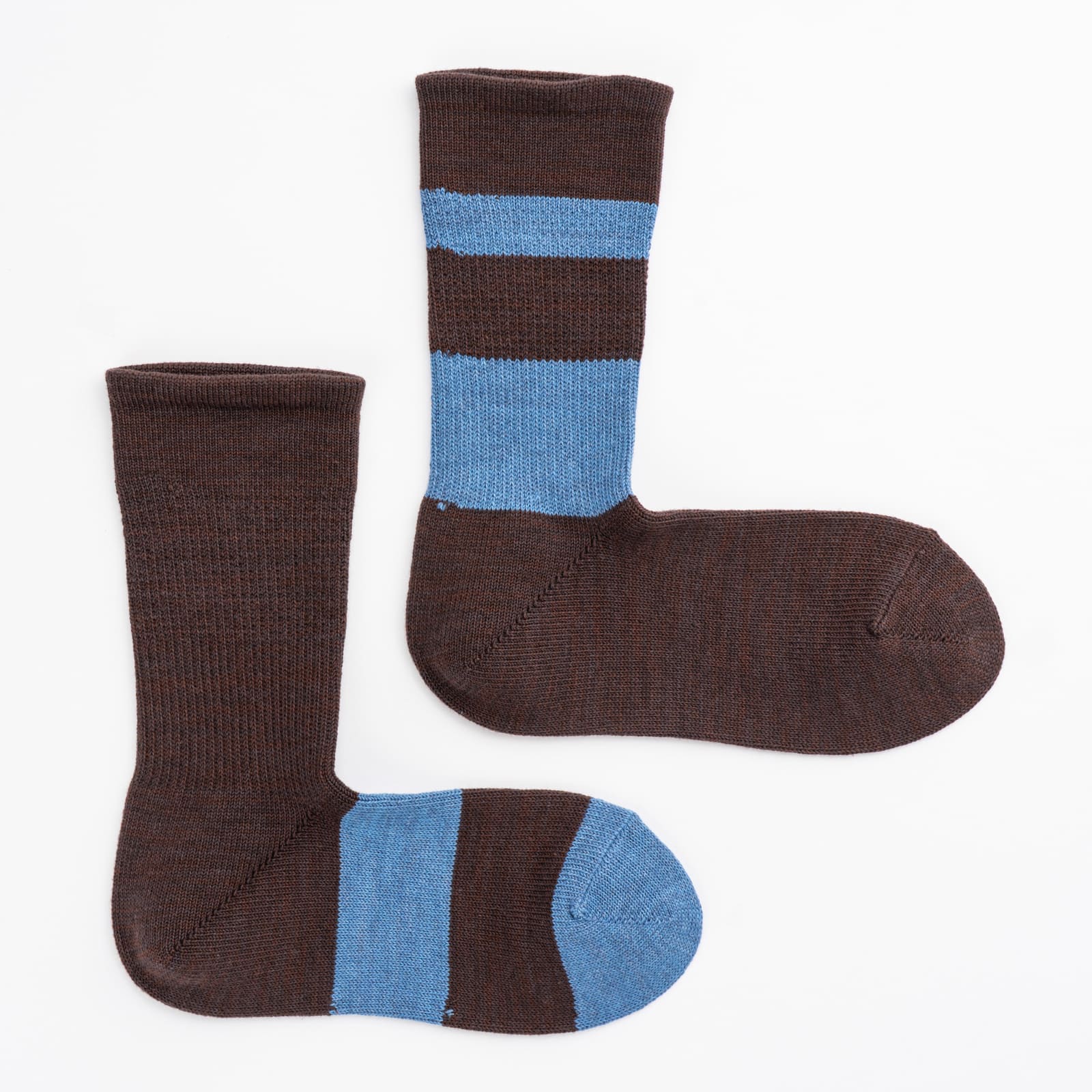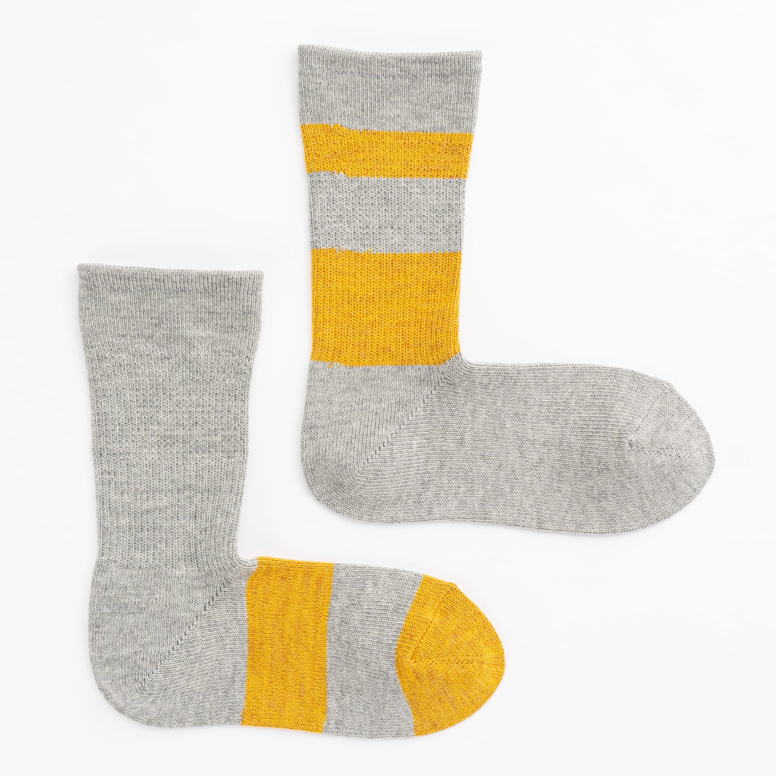 色目の異なる吸汗速乾の素材を撚り合わせて杢調を表現し、左右違う模様になっています。コンフィーハウスの定番商品の1つになります。