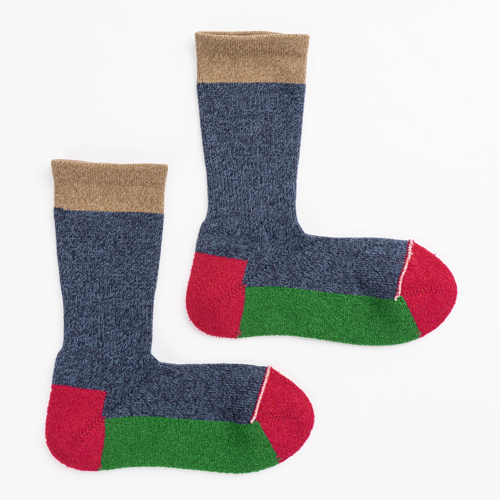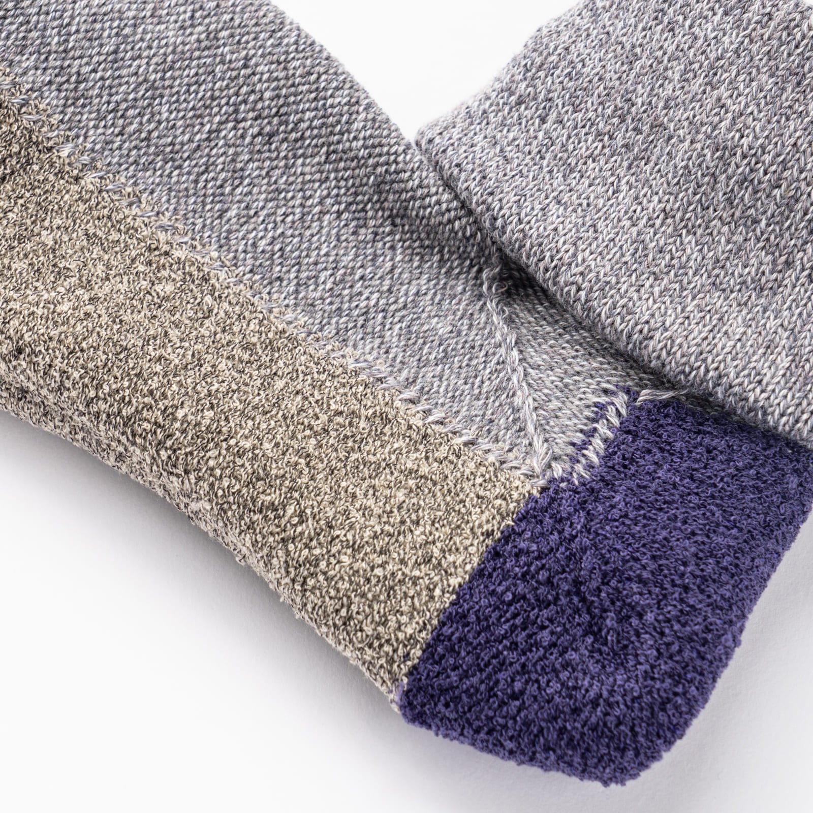 つま先の縫い合わせを表側にしており、歩行時に不快を感じるつま先のゴロツキ感が解消されます。足底はパイル調仕様で、ウォーキング等身体を動かす際にもおすすめ。