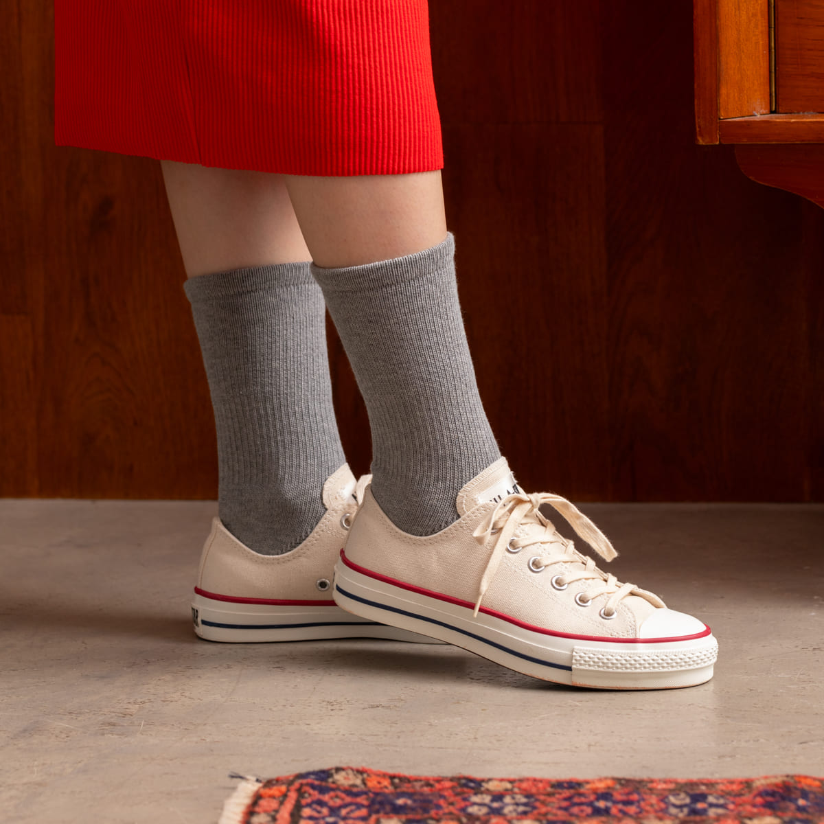 吸汗速乾性に優れた糸を使用したコンフィハウスの原型となるクルーソックス。コンフィハウスの快適性を体感しながら、どんなシーンにも使える万能な1足です。安定の履き心地を是非お試しください。
