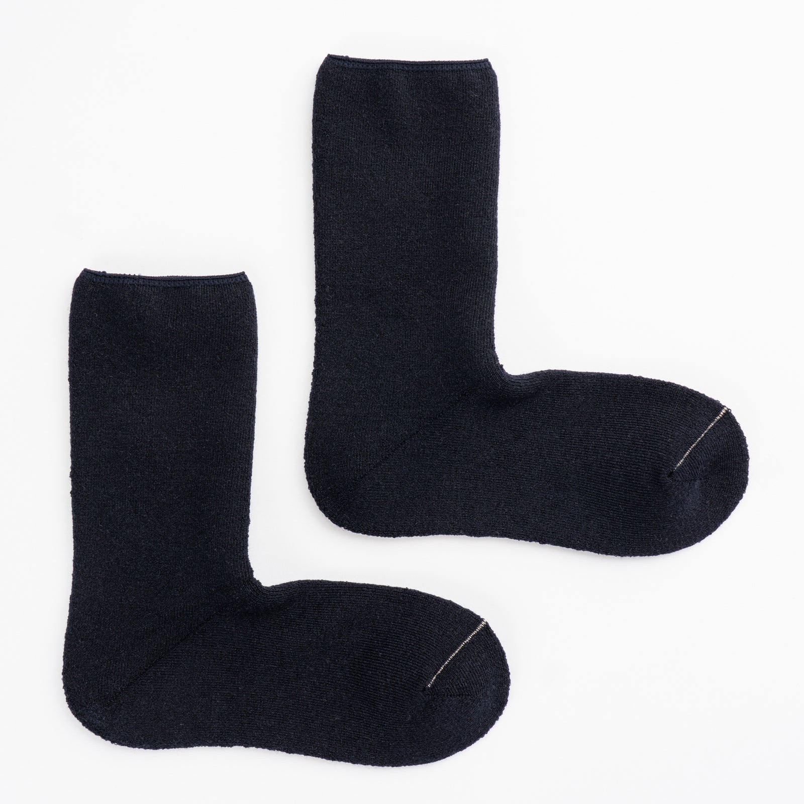 ウールを使用し、保温性とクッション性を高めたパイル編みシリーズのクルー丈です。つま先の縫い合わせた糸色がアクセントになります。