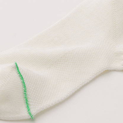 クールマックス素材で暑い季節も快適に過ごすことができるカジュアルアンクルソックスです。サンダルやスニーカーと合わせてデイリー使いはもちろん、アウトドアシーンにもおすすめ。つま先にワンポイントカラーを添えた、履きやすい1足です。