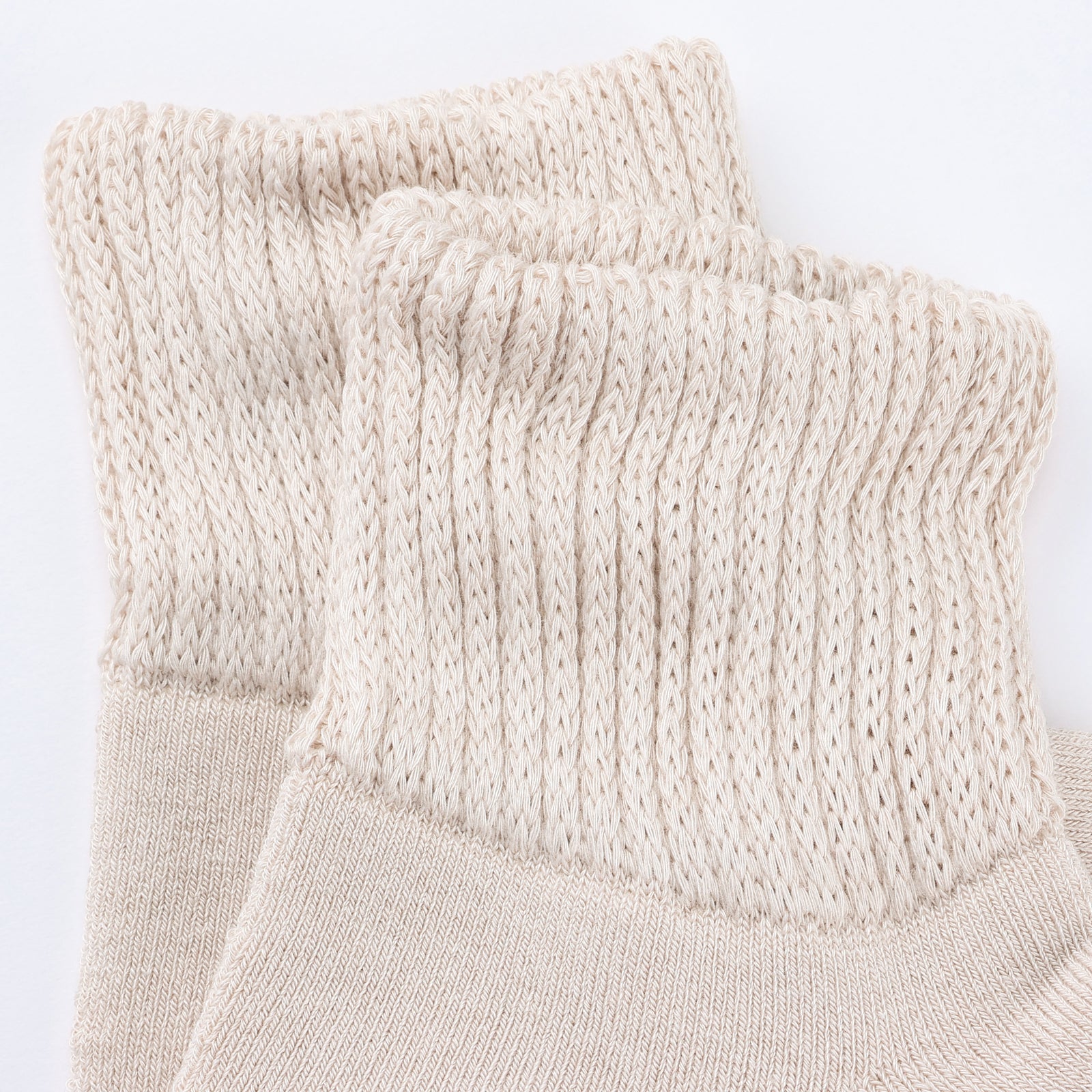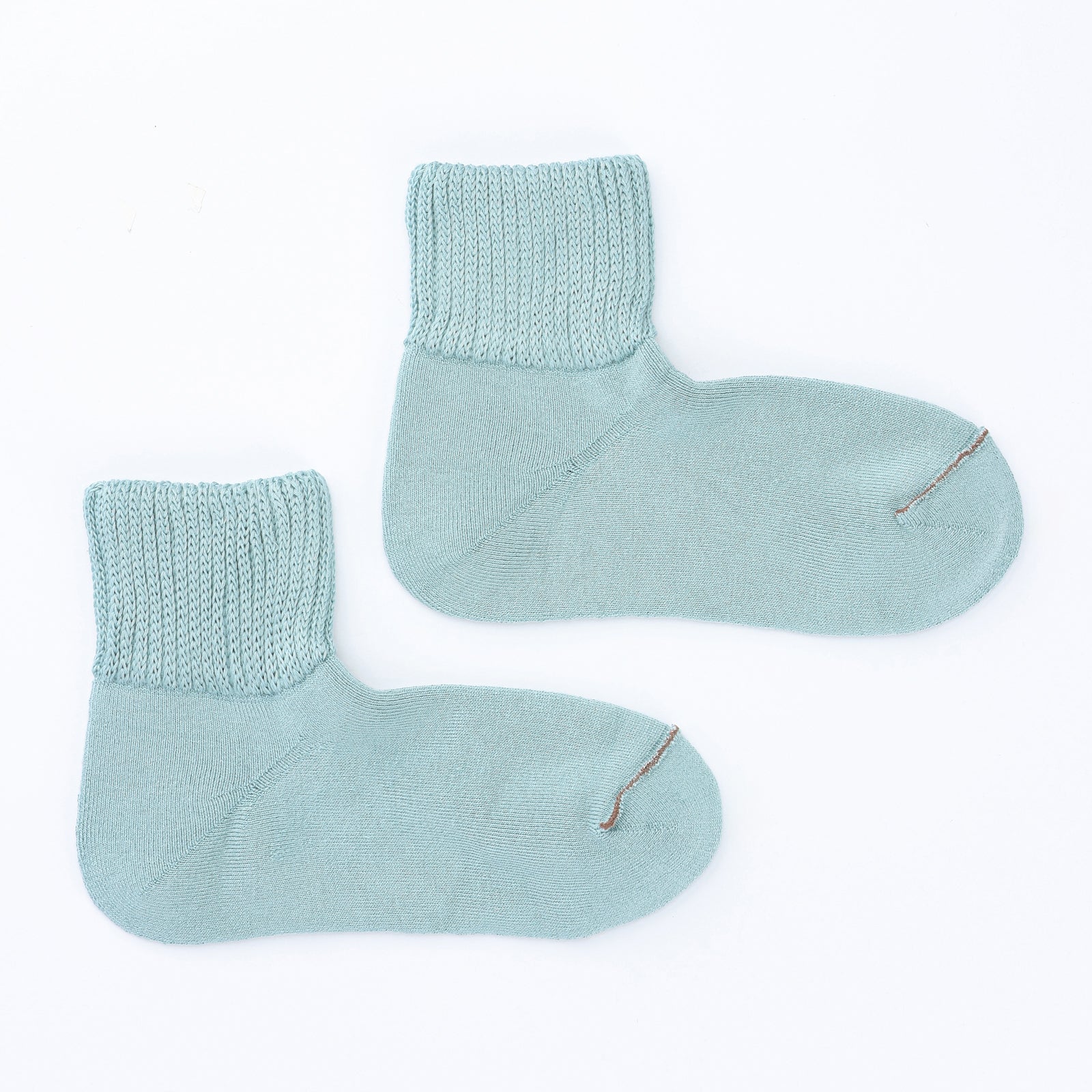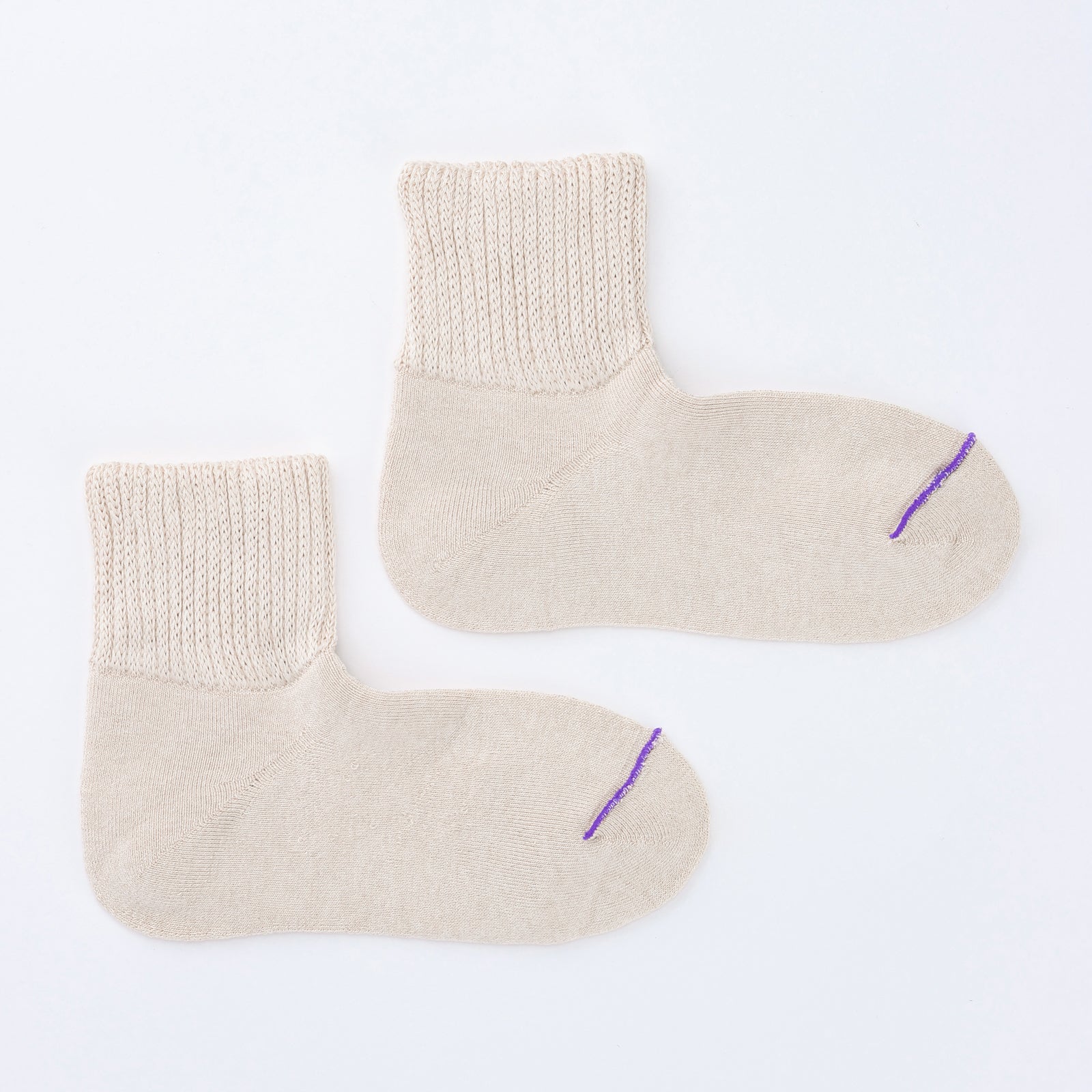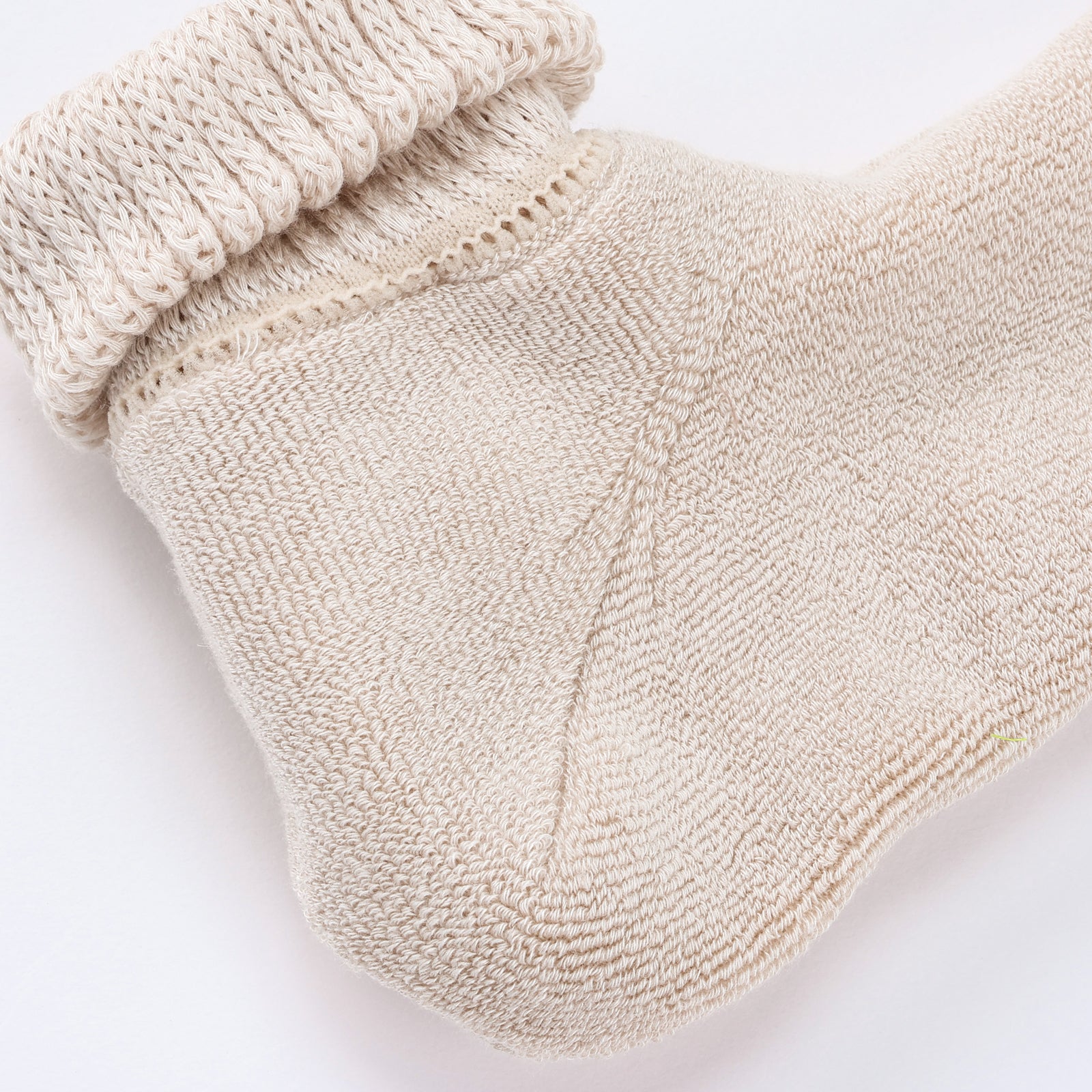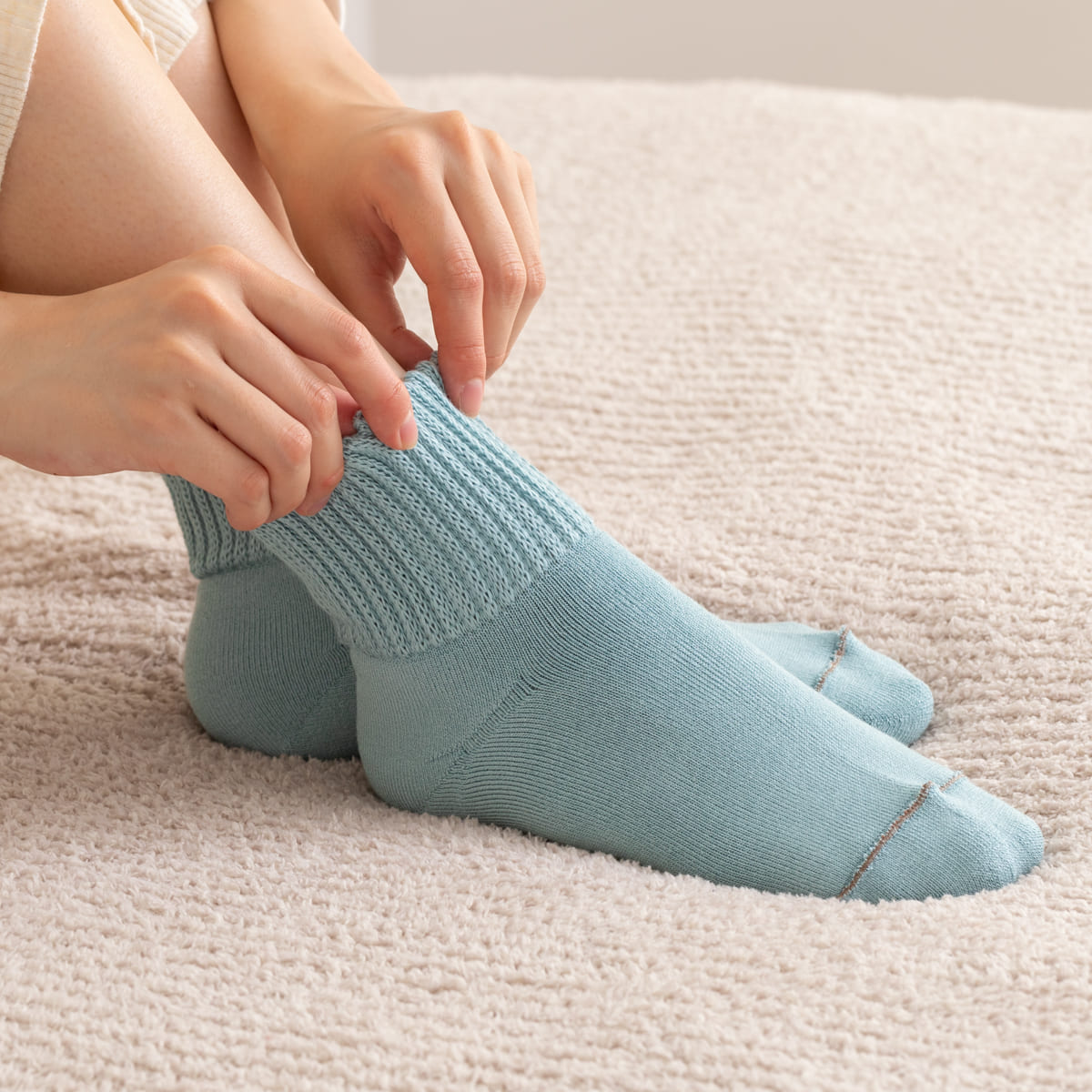 ふかふかとしたクッションのようなパイルとレーヨンシルクの素材が優しく足元を包み込んでくれるルームソックス。レッグ部はゆったり編み、ストレスなく履けます。