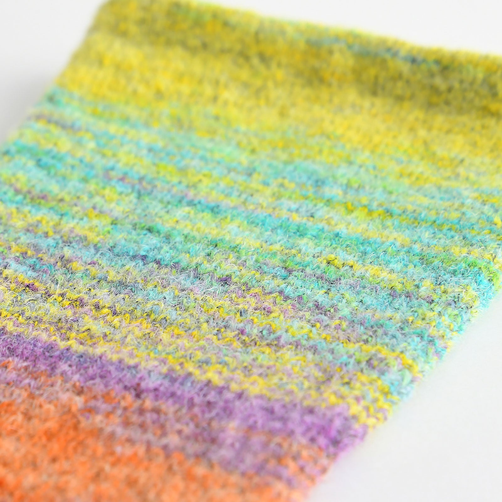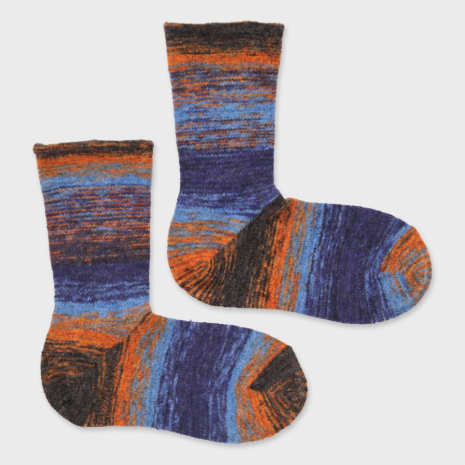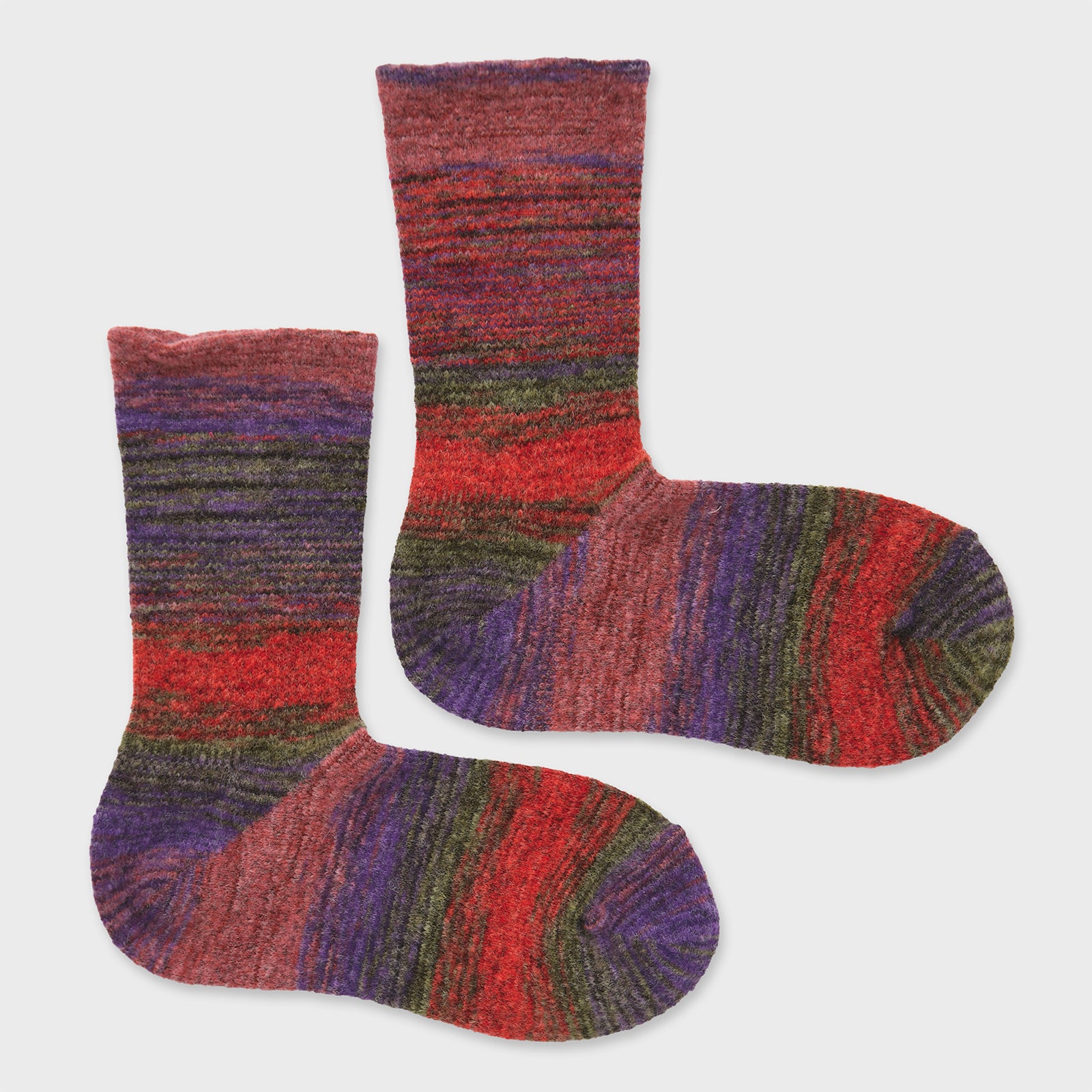 グラデーション柄が印象的でパッと目を引くデザイン。履くだけでコーディネートが決まります。1 足 1 足、色の出方に違いがありますのでお気に入りの色をお選びください。