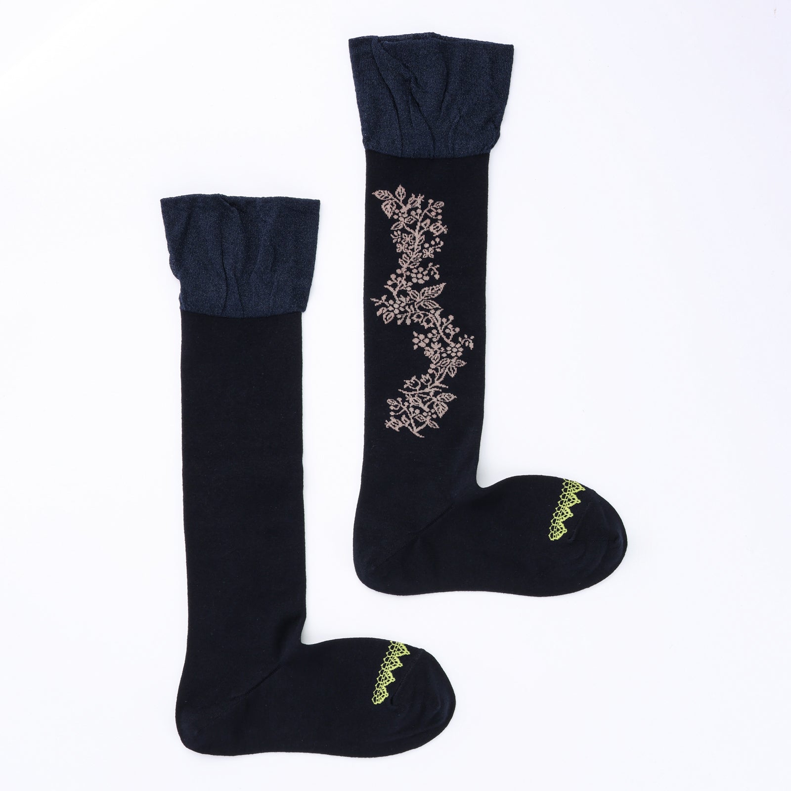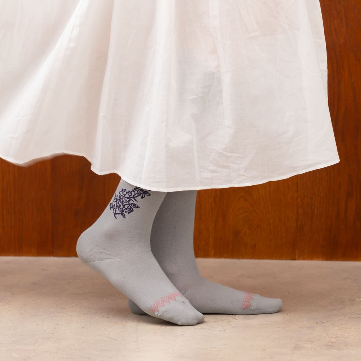 細かい花柄がおしゃれな1足。爪先にレース柄が入っていて、脱いだときにもポイントになります。コットンスカートやカジュアルな服装にちらりと見せて履くのがおすすめ。